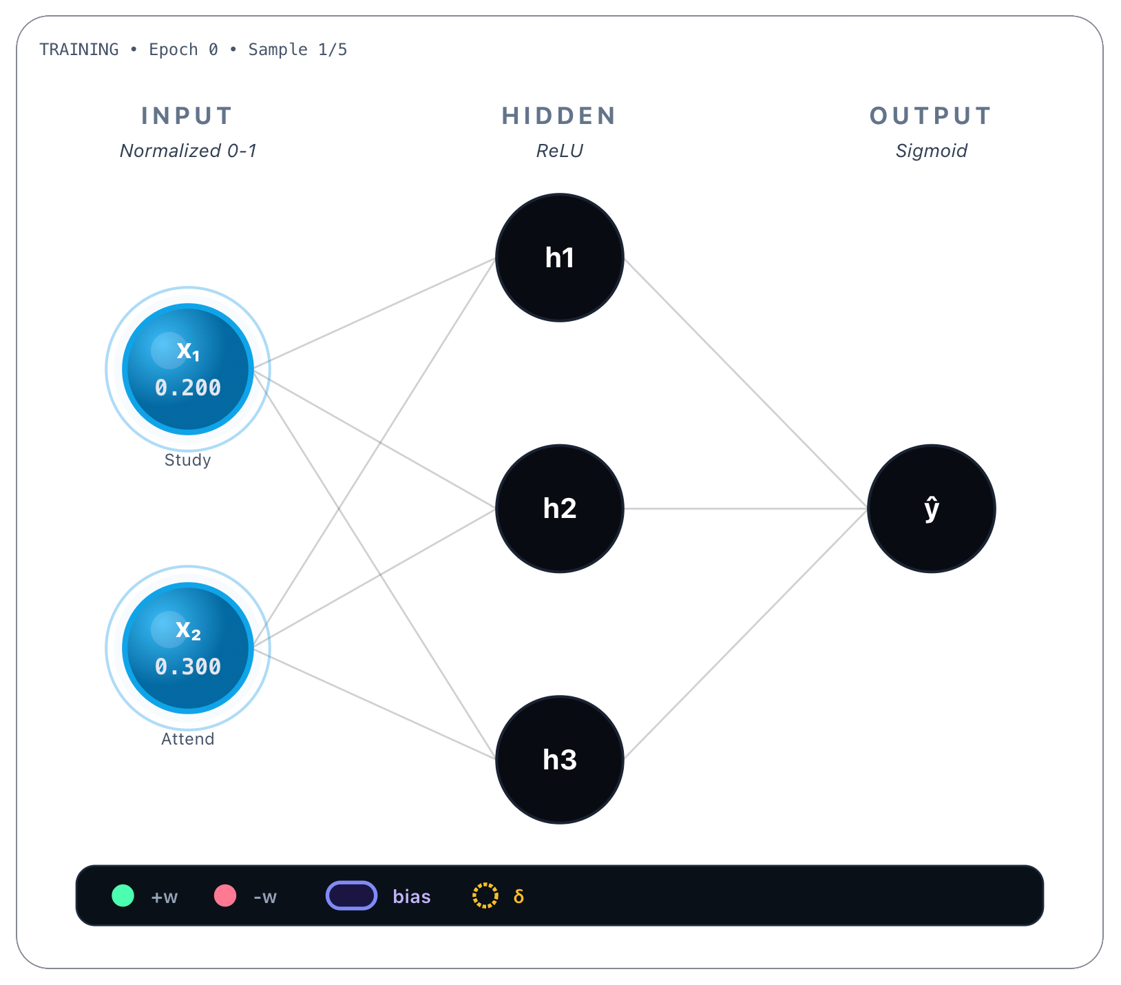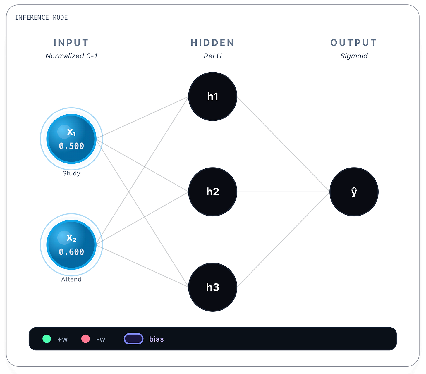 h₃ → output: w = -0.55Bias we reveal next.