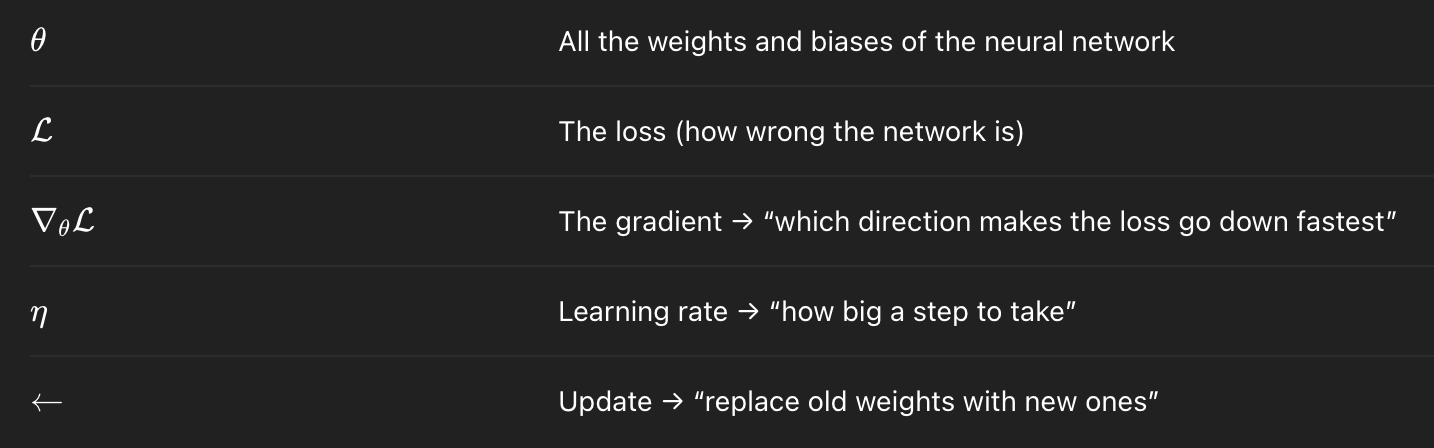 Great. But what is the “gradient” ? The gradient is a vector of partial derivatives that tells you how much the loss changes when each weight changes. Formally: